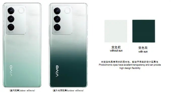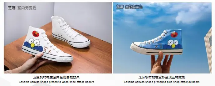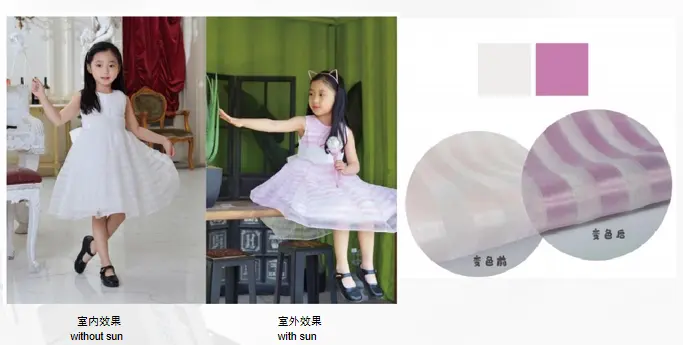 Fotokromisk materiale er et fotokromt pulvermateriale produsert ved å pakke inn fotokromiske fargestoffer i mikrokapsler gjennom spesielle prosesser, som kan absorbere energien til sollys (ultrafiolett) etter å ha blitt bestrålt av sollys (ultrafiolett), noe som resulterer i endringer i molekylstrukturen, noe som resulterer i endringer i absorpsjonsbølgelengder, noe som resulterer i fargeendringer; Når sollys (ultrafiolett) energi går tapt, går den tilbake til sin opprinnelige molekylstruktur og gjenoppretter sin opprinnelige farge. Karakteristisk:
